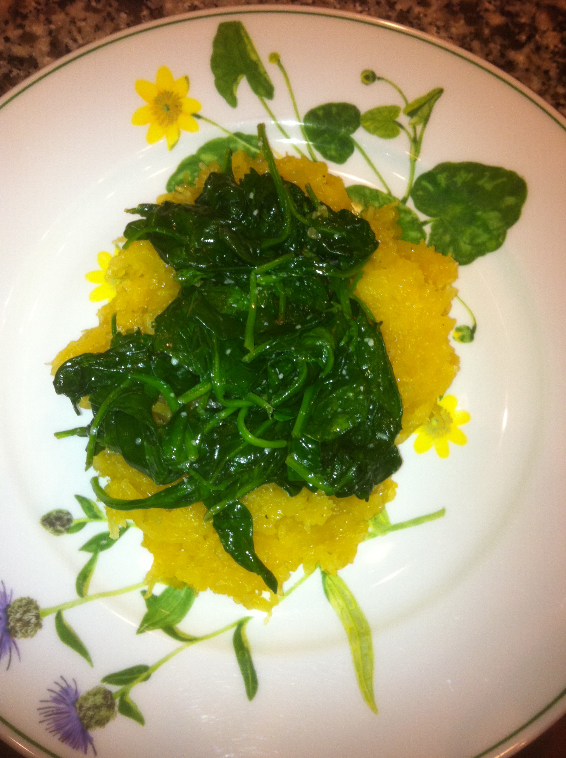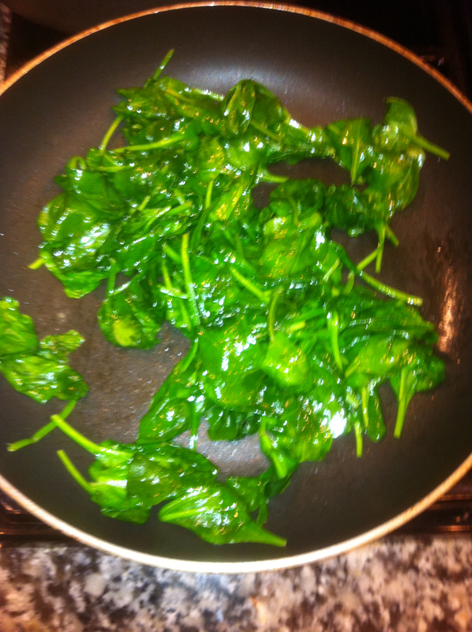 Alrighty then, salmon is in. Then I think, I’ve got some fresh spinach I can saute to add to my little creation here…