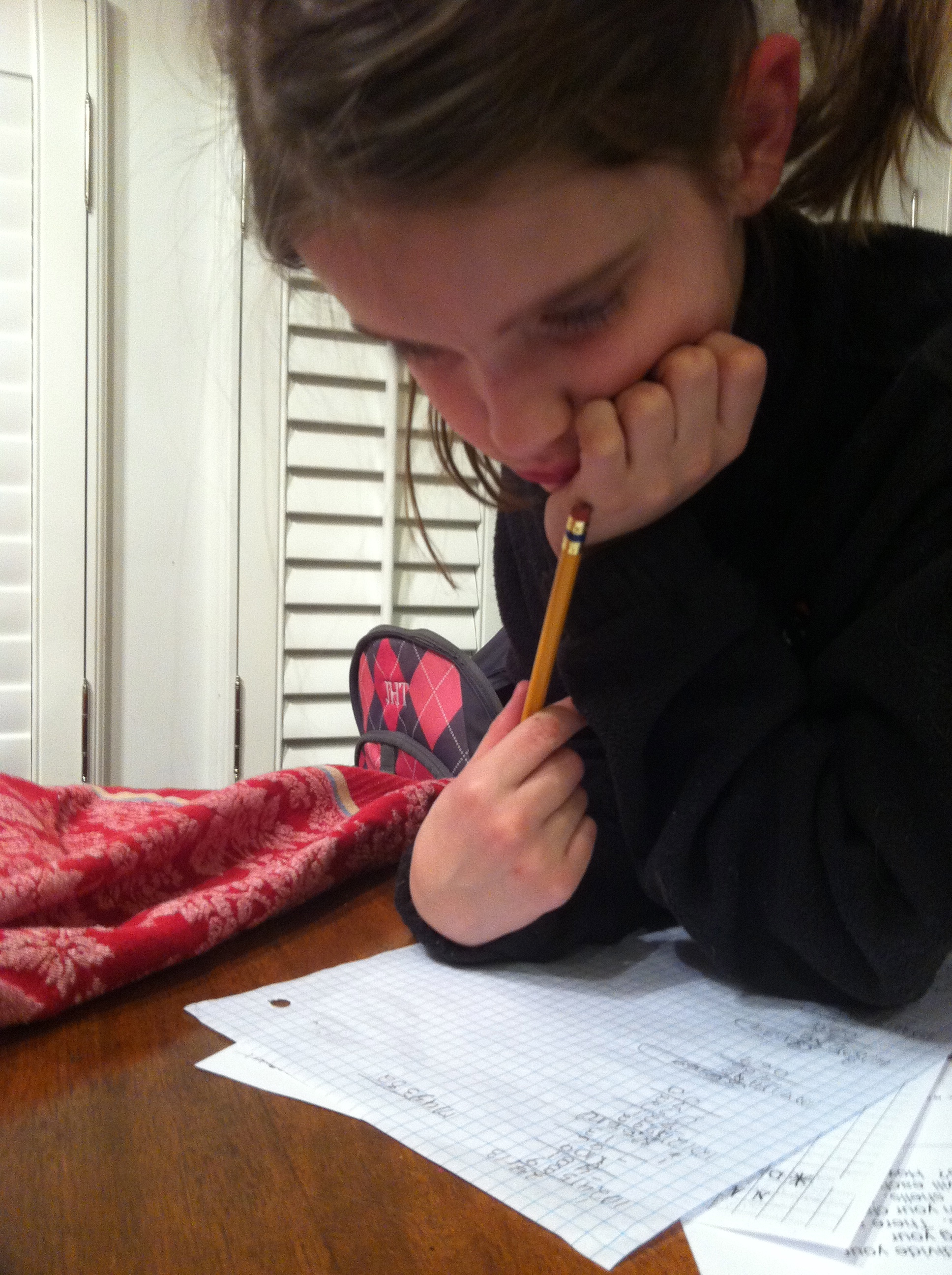 BUT, it wasn’t my savvy math skills that  have really stuck with me after my week of diving back into my role as a teacher, but it was watching her work out her math problems.  I mean REALLY WATCHING- like with your eyes and your brain- you know what I’m talking about?  I don’t remember a lot these days.  (That is another whole blog entry that dawned on me tonight…and I will have to start writing this as soon as I am done here because I will forget otherwise.)  Crap, where was I? Homework, math, my superb teaching skills….MATH!